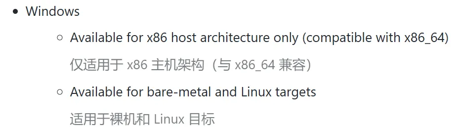对于stm32裸机开发选,Windows (mingw-w64-i686) hosted cross toolchains/AArch32 bare-metal target (arm-none-eabi)条目下的zip文件下载。